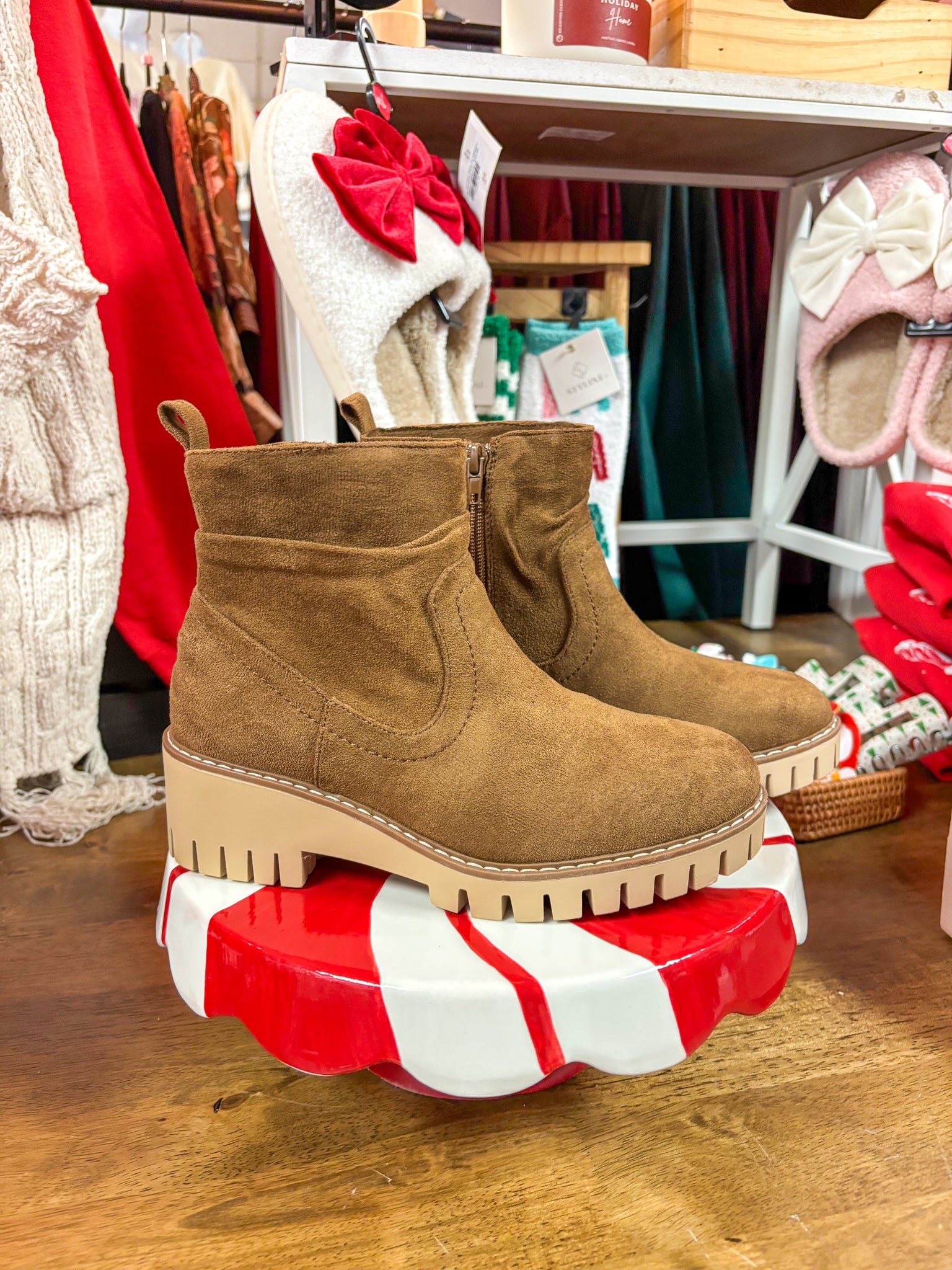 Step into effortless style with these Tan Flex Sole Boots—the perfect blend of comfort and cool. Featuring a convenient side zip for easy on-and-off, a relaxed slouch silhouette, and a flexible sole that moves with you, these short boots are your new go-to for everything from casual outings to laid-back adventures. Cozy, chic, and ready to become your favorite pair.