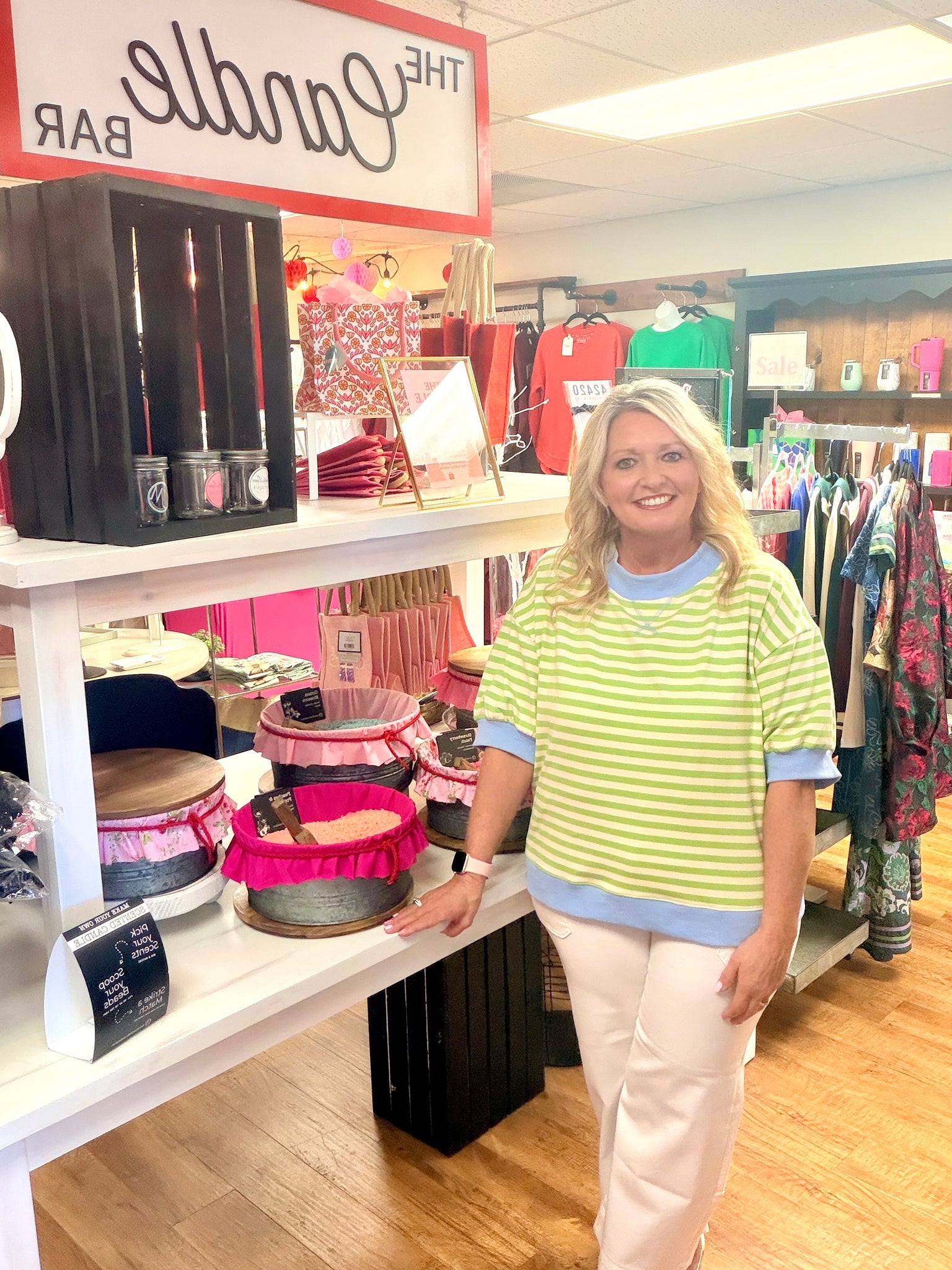 Loose, cozy, and oh-so-easy to style. This spring green striped sweatshirt pairs beautifully with denim or white jeans for that effortless pop of color you've been craving. Your new go-to for comfortable, playful days. The Small with also fit a medium.