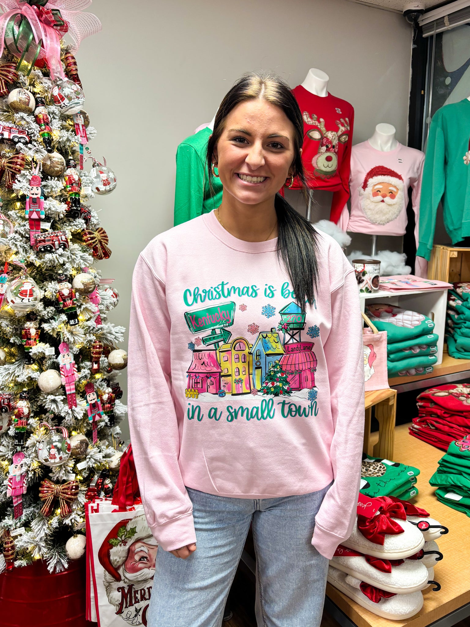 Rock your Kentucky pride this holiday season in this light pink unisex sweatshirt. Featuring a fun Christmas design that celebrates small-town charm, it's the perfect cozy layer for festive gatherings and casual winter days.